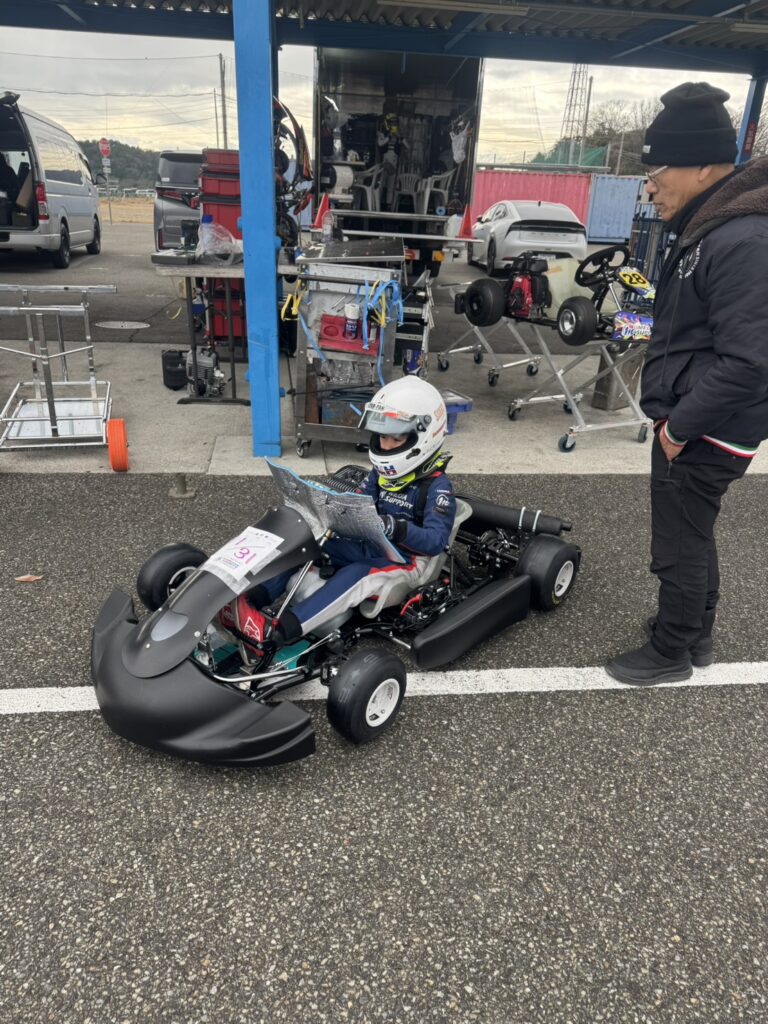 これまで乗りこなしてきたキッズカートとは比較にならないパワーと、シビアな操作性が求められるカデット車両。二人は真剣な表情でコックピットに収まり、未知の挙動に挑みました。キッズカート以上に繊細なブレーキングやステアリングワークが必要なこのクラス。難しさに直面しながらも、お互いの走りを見守り、一歩ずつレベルアップを目指す姿が印象的でした。若き二人のドライバーにとって、自身のスキルを再確認する極めて貴重な経験となりました。